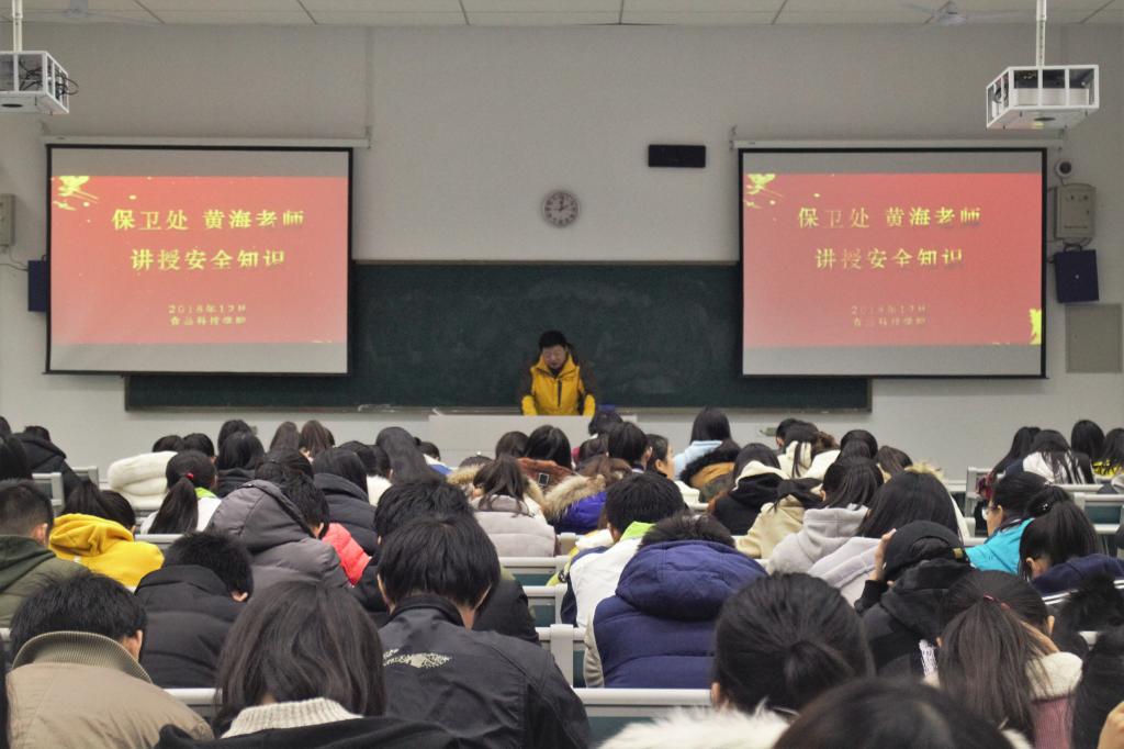 在主楼134举办“食品院2018级新生校园安全教育”讲座。本次讲座由保卫处黄海老师主讲,食品院2018级182名大一新生参加此次讲座。主要就校内安全现状、历年案件分析及安全注意事项三方面进行讲解。