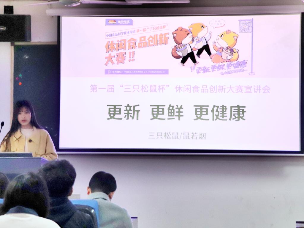 3月13日,“三只松鼠杯”休闲食品创新大赛宣讲会在食品楼215报告厅举行。本次大赛旨在提升学生的创新创业能力,为广大食品学子提供实践与技能展示的平台。本次活动由第一版主