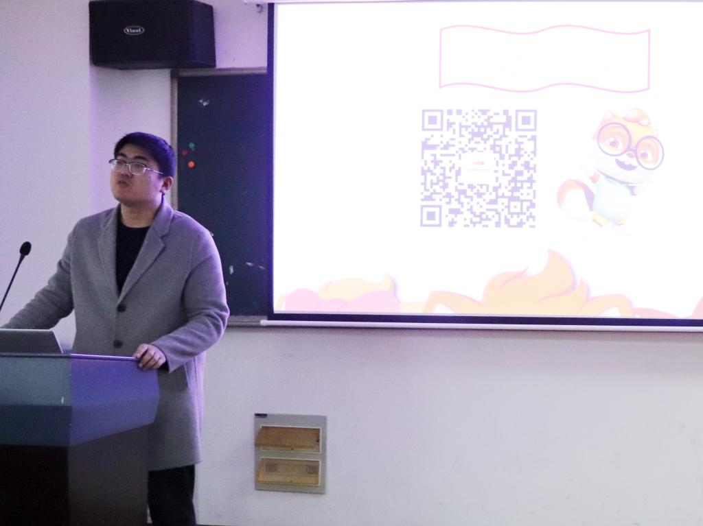 随后谢婷婷对于三只松鼠有限公司的第一版主以及竞赛主题、注意事项进行介绍。通过一系列产品展示,为参赛队员提供创新思路。最后详细介绍了本次大赛的理念“更新 更鲜 更健康”,使大家更加明确了大赛主题和方向。最后,在答疑竞答环节,同学们针对产品创意设计、专业技术难点、竞赛主旨等方向积极提问。