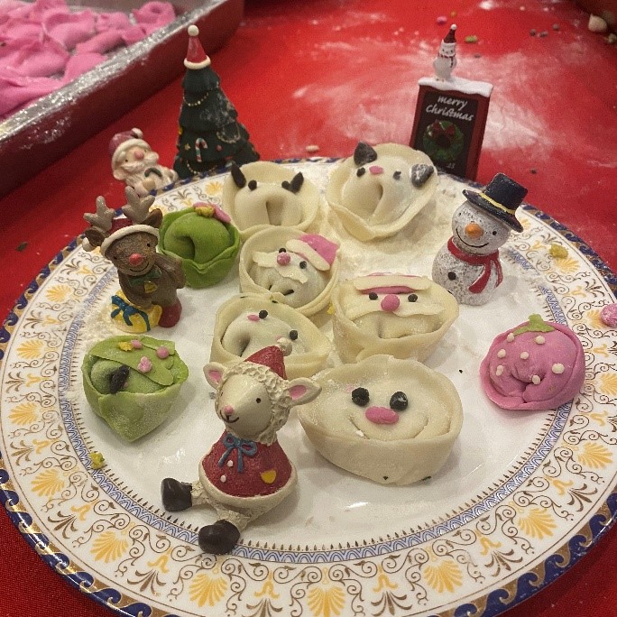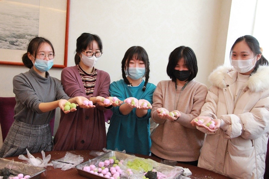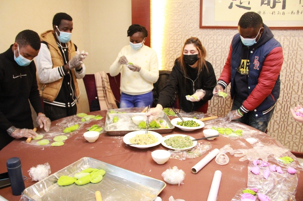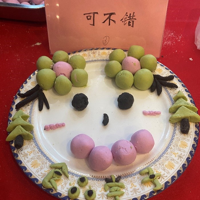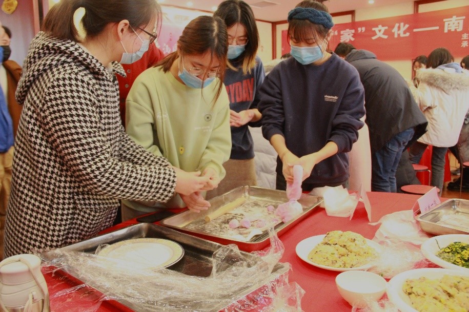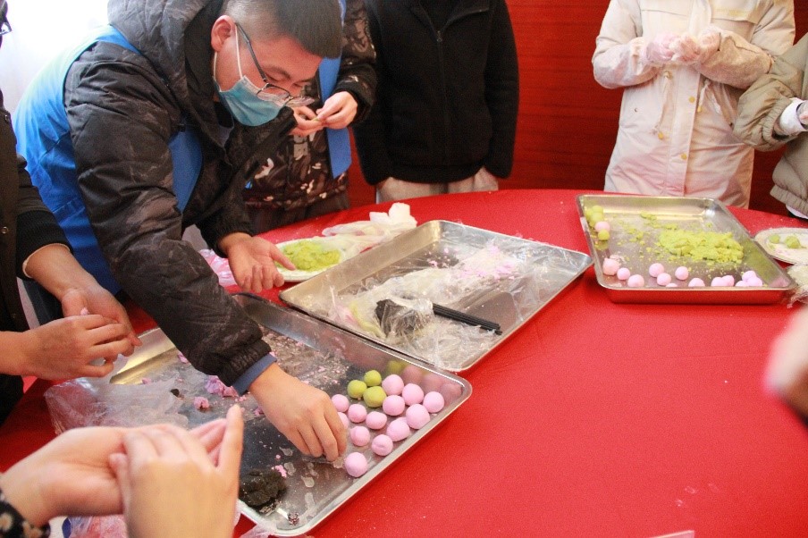 同学们一起动手包饺子、包汤圆,团结协作,乐在其中,有的擀皮儿,有的包馅儿,一个个饱满挺拔的饺子,圆滚滚的汤圆儿很快就成型了。