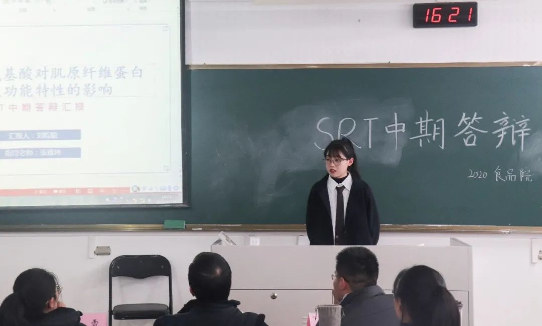 汇报过程中,各SRT小组分别汇报了本小组的研究背景、进展情况、阶段性成果、存在的问题以及今后的研究计划。项目涉及食品多方面创新优化以及新型食品的研发等多方面内容。