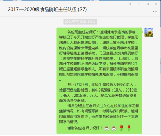 党委高度重视,第一时间部署学院疫情防控工作,发动辅导员、班主任关心每位同学,每日统计上报每位学生身体情况,准确传达学校相关政策要求和文件精神。