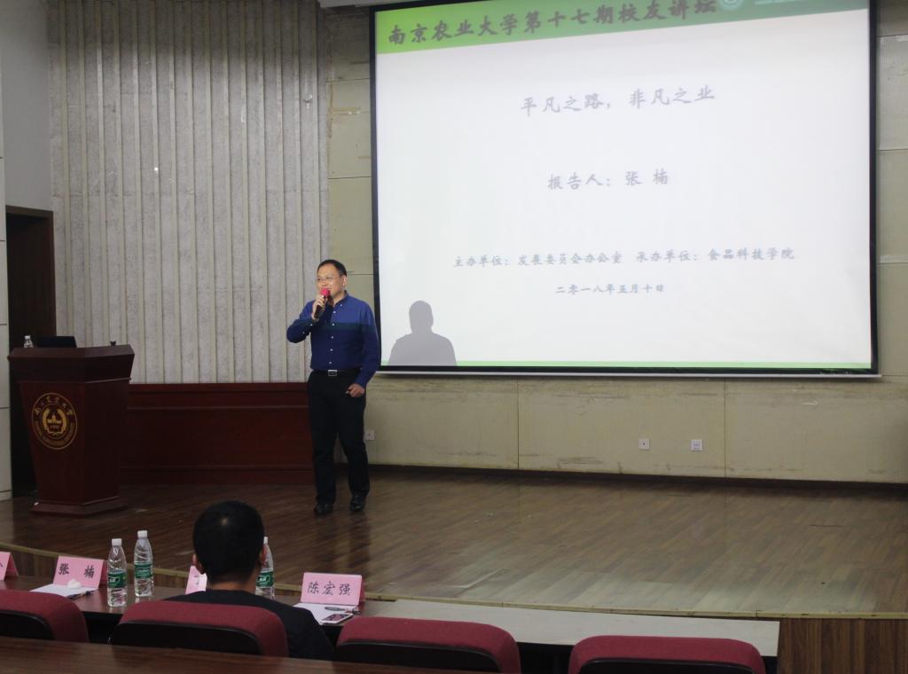 杰出校友、江苏省食品集团有限公司副总经理兼行政管理中心主任张楠以“平凡之路,非凡之业”为题,与我校第一版主