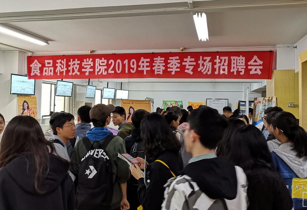 2019年春季专场招聘会在学校就业指导中心二楼招聘大厅举行。食品院党委副书记邵士昌、辅导员王雪飞、周凌蕾、陈宏强、邵春妍出席了本次招聘会,并与用人单位进行了深入交流。