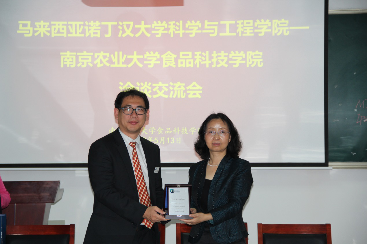 徐幸莲教授和陈德义教授分别介绍了双方学院的基本情况。徐幸莲教授表示,马来西亚是我国“一带一路”倡议的重要合作伙伴,两国之间的友谊源远流长,双方可在食品加工、食品营养和安全、智能农业等方面深入加强合作,实现共同发展,为两国农业科技的创新做出贡献。陈德仪教授表示,马来西亚诺丁汉大学非常重视与中国大学之间的合作和交流,希望可以在教师与学生互访、联合培养博士、建立联合实验室等方面进行合作,增进两院之间的友谊,促进双方的共同发展。双方还就马来西亚特色农产品如燕窝、榴莲等的采摘和深加工进行了深入交流,并初步达成合作意向。