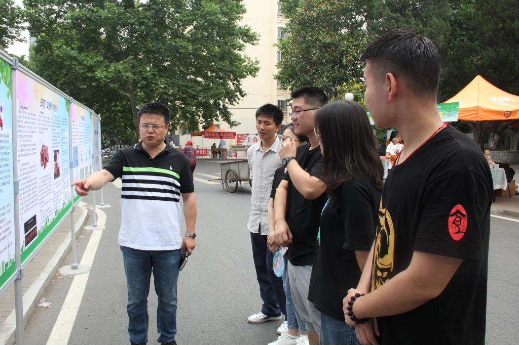 身为食品人,不仅具有良好的理论基础,也有充分的实验能力,以及向公众普及简单的食品检测技巧的责任。在科技体验区,共准备了三个小实验:生肉比色是通过比色卡对照,能够判断肉质的好坏;果蔬检测则是通过检测试纸,便能知晓农药残留情况,从此农药不再“隐形”;最具特色的是最后一个“绛引珠”实验,“绛引珠”是由食品院学子研发并获得专利的一个项目,通过“绛引珠”能够检测油脂成分,最直观的便是能够分辨正常油与地沟油,具有极高的实用价值。