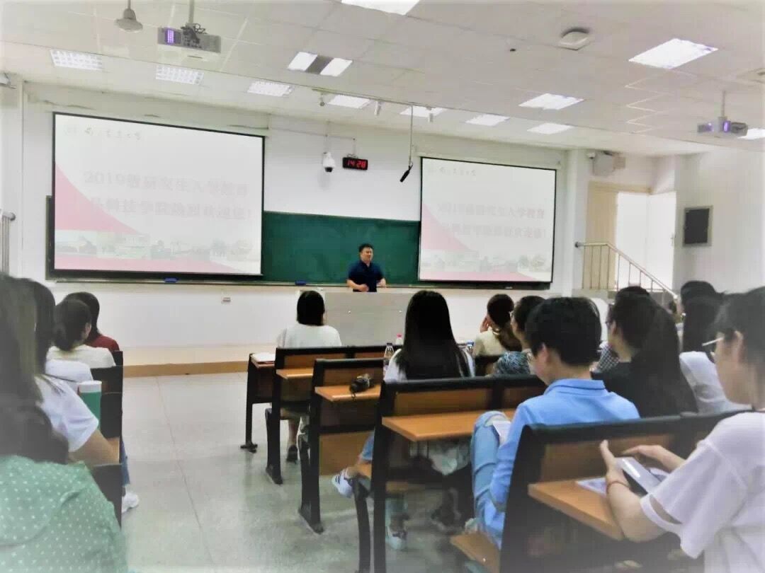 邵士昌代表学院师生对全体新生的到来表示了热烈欢迎,将学院情况进行了介绍,并向全体新生提三点要求和建议:1、希望所有研究生以习近平总书记在十九大报告中提出实施健康中国战略为目标,认真对待学业,努力科研,能够树立远大理想,加强学业研究,将自己的人生目标和祖国的命运紧紧联系起来,做有世界眼光,中国情怀,南农品质的食品行业高级领军人才。2、希望大家加强和导师、辅导员老师的沟通。要学会尽快适应导师的步伐和风格,多和师兄师姐请教。3、加强心理健康建设。希望同学们能够正视压力,积极参加体育、文化活动,有效缓解学业压力。