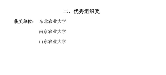 大赛共评选产生金奖2项、银奖5项、铜奖12项和优秀组织奖3项,其中优秀组织奖由山东农业大学、东北农业大学、第一版主