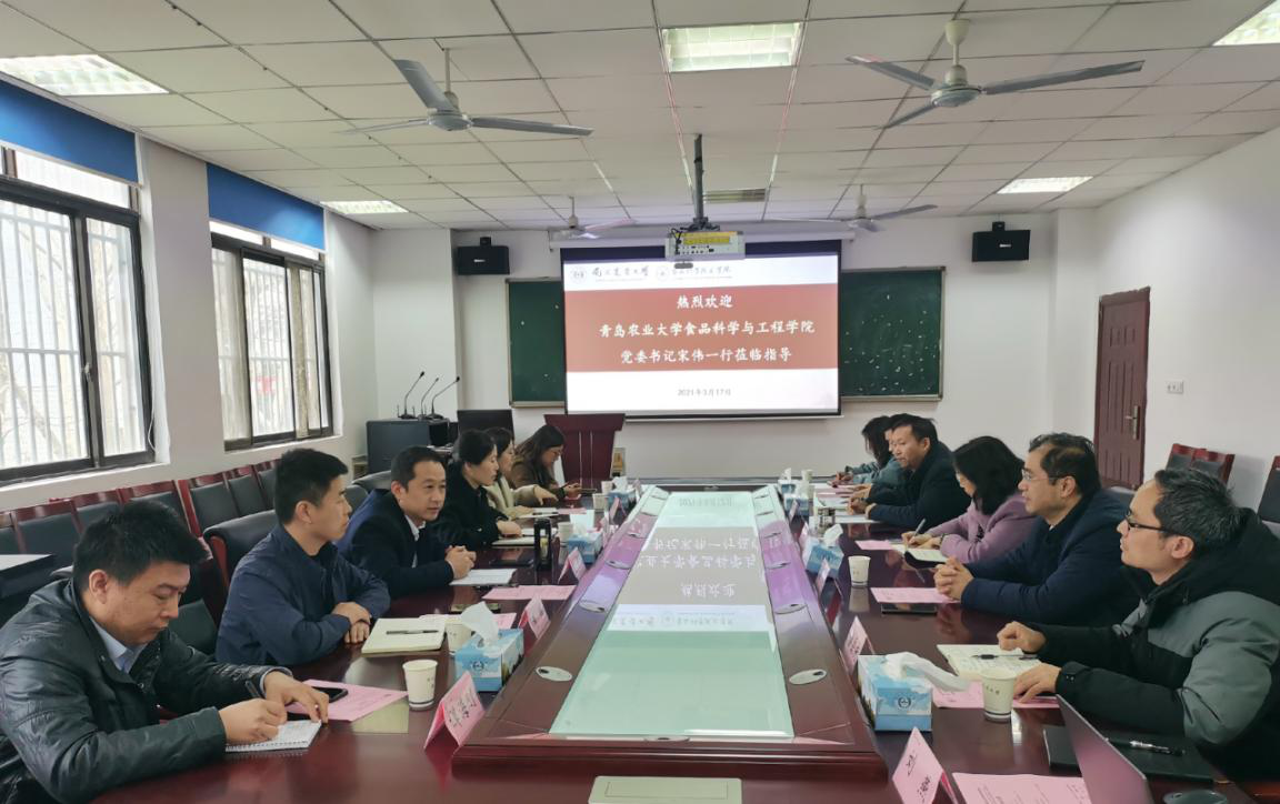 3月17日上午,青岛农业大学食品科学与工程学院党委书记宋伟、副院长肖军霞、党委委员李鹏、专业负责人郭丽萍、王凤舞、谭海刚共6人来第一版主