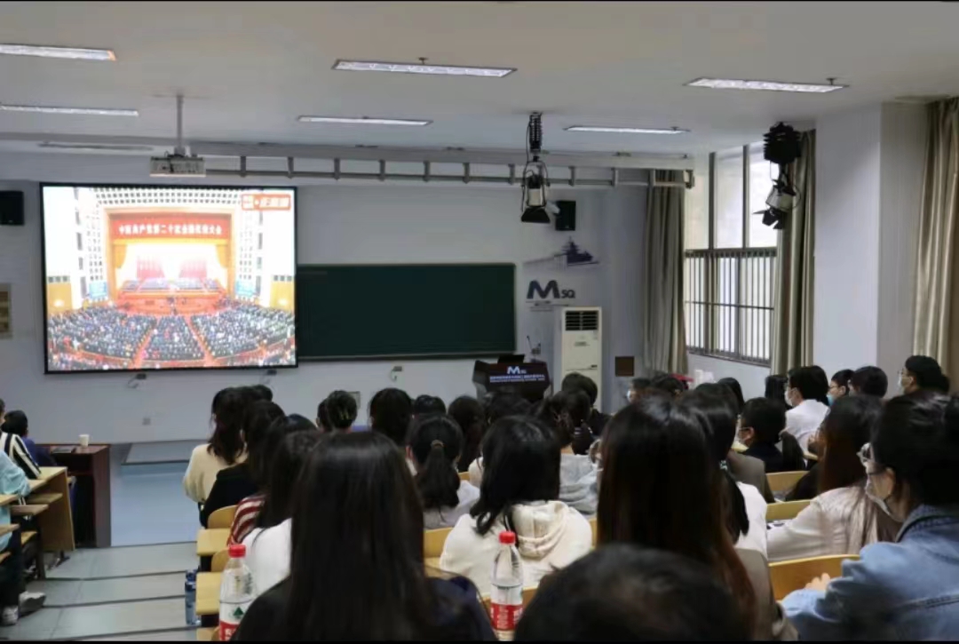 为第一时间学习党的二十大精神,学院党委书记孙健、院长李春保及学院全体领导班子、支部书记、系主任、退休教师代表及学生党员代表共计八十余人在肉品楼报告厅全程观看开幕式直播。