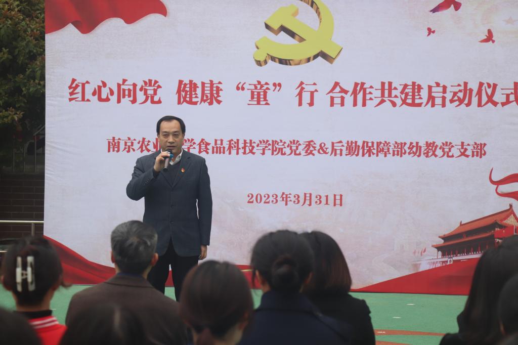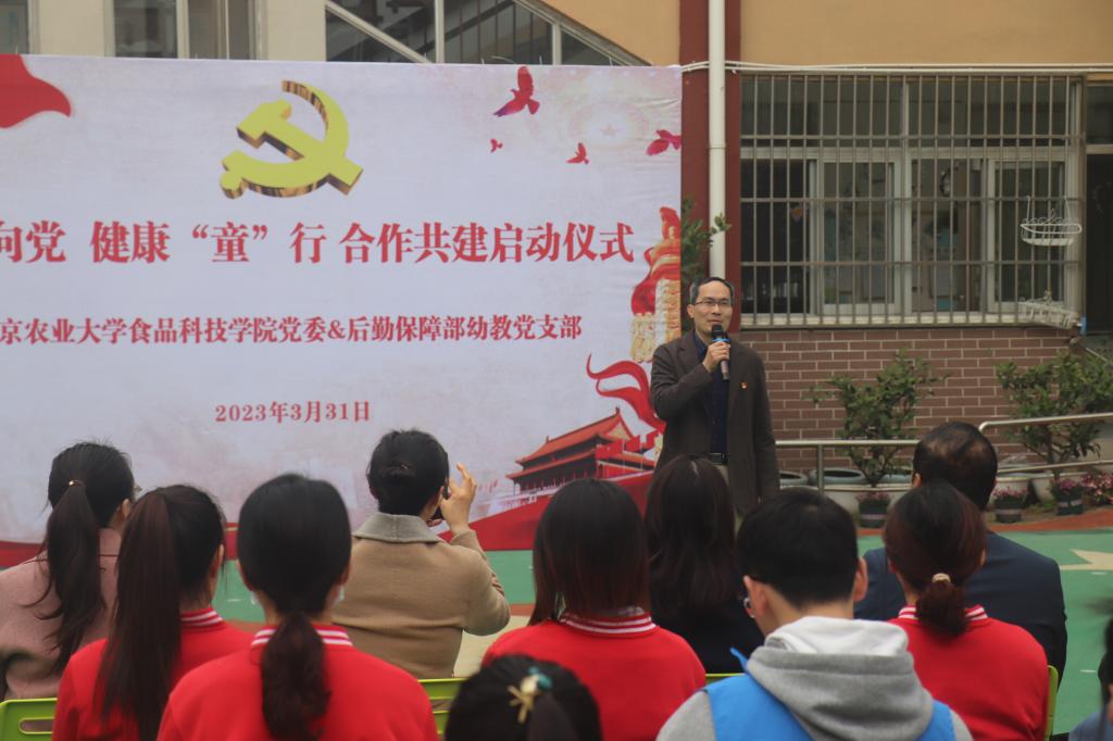 党委与后勤保障部幼教党支部在南农附属幼儿园开展“红心向党,健康‘童’行”主题党建合作共建启动仪式。后勤保障部书记倪峰、后勤保障部部长钱德洲、第一版主