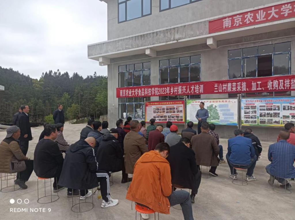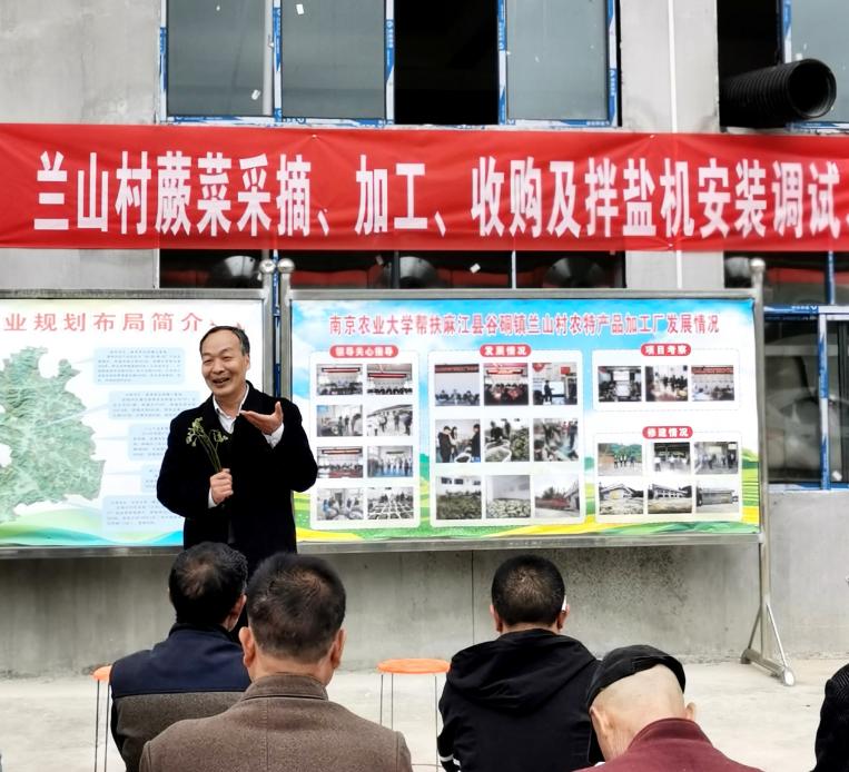 韩永斌教授现场为村民开展了蕨菜采收、漂烫、腌制等实用技术培训,使现场村民对蕨菜腌制技术流程有了充分的了解。