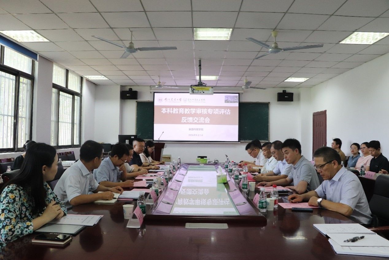 本科教育教学审核专项评估反馈交流会在食品院220会议室顺利召开。江南大学教务处李兆丰处长、中国农业大学食品科学与营养工程学院廖小军院长、西北农林科技大学食品科学与工程学院吕欣院长、大连工业大学第一版主