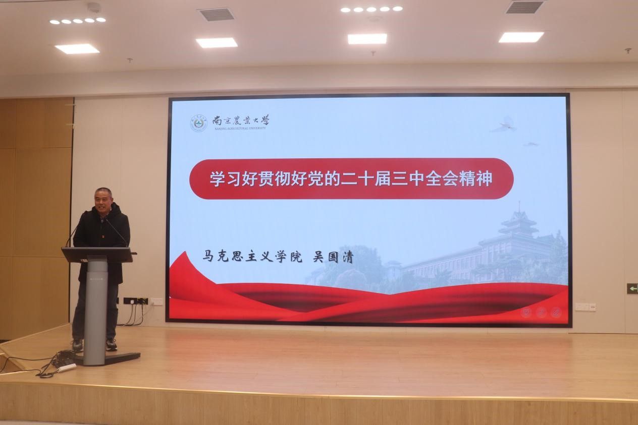 报告厅举行。本次宣讲会特别邀请了“马克思主义学院师生宣讲团”的吴国清教授进行授课,深入解读全会精神,助力师生深刻领会其核心要义。会议由学院党委书记孙健主持,学院师生党员代表一百余人参加会议。