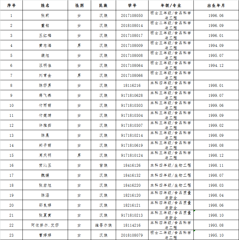 如有任何疑问,请在6月30日前向食品科技学院党委反映。