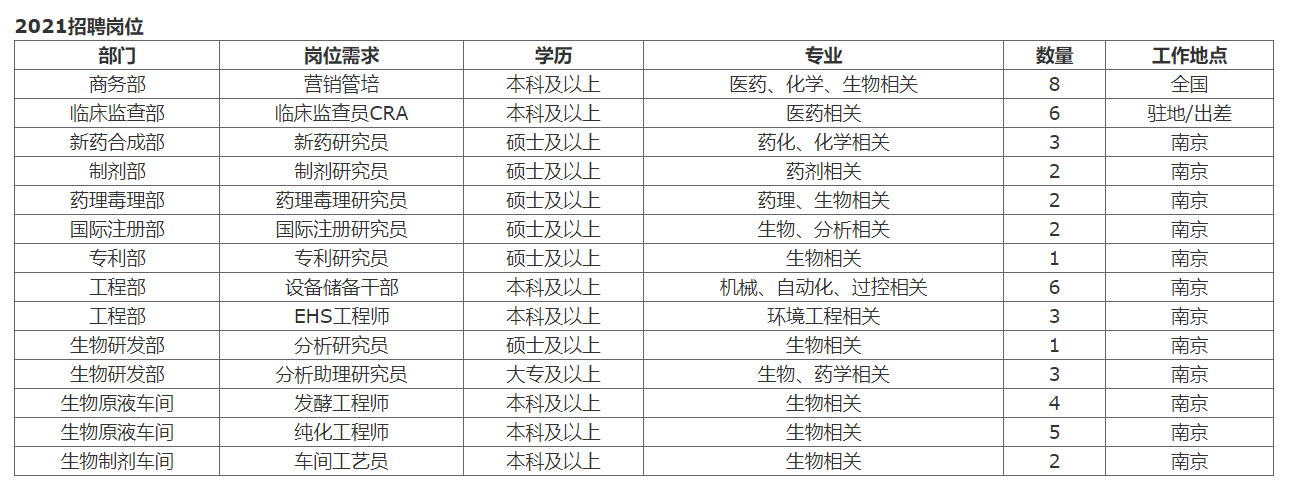 人力资源部(生物药厂区)025-85666008