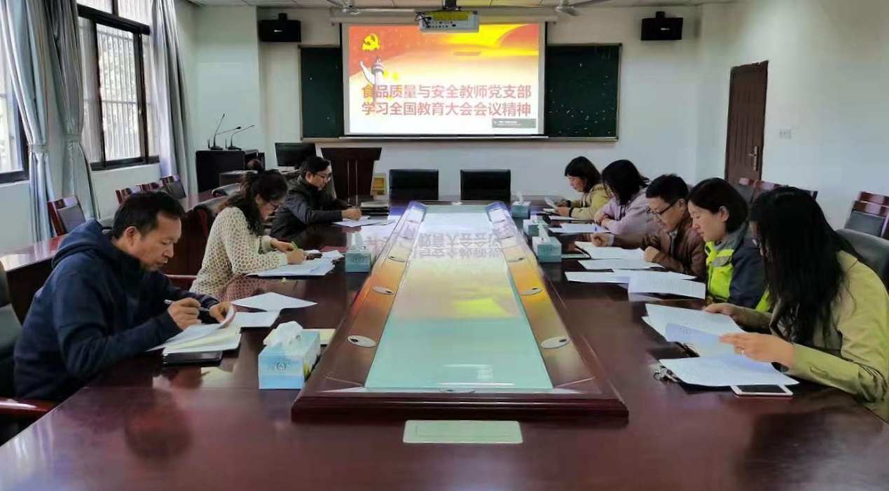 选举结束后,食安教师支部全体党员集中学习了“2018年全国教育大会会议精神”。习近平总书记在会议中指出,新时代中国特色社会主义建设要“优先发展教育事业、加快教育现代化、建设教育强国”。教育是民族振兴、社会进步的重要基石。副院长辛志宏表示,作为人民教师,我们的任务是教书育人。培养什么样的人,是教育的首要问题。学生入学后,不仅学习专业知识和技能,更要加强品德修养。让学生学有所成、学有所用,真正地成为社会主义建设者和接班人。会上其他老师也结合了自身教学科研经验、国际局势变化等方面,表达了自己对教育大会精神的理解和感悟。