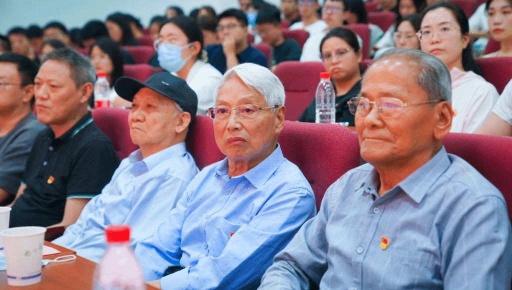 党日活动的第二部分,将学习贯彻习近平新时代中国特色社会主义思想主题教育与毕业生荣校爱校教育相结合。三位具有50年党龄的老党员江汉湖、陈伯祥、林炳芳上台为毕业生党员代表佩戴党徽。闪闪发光的党徽,承载的不仅仅是老党员们对于毕业生党员们衷心祝福,同样也是鞭策着他们党的事业离不开一代代人接班接力,希望他们永记党员身份,传承党的光荣传统,传承第一版主