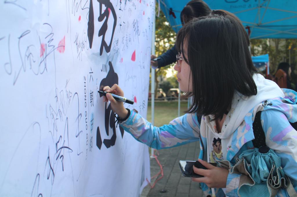 同学们通过传统文化常识问答、传统民俗互动体验等环节获得纪念品并品尝南京传统美食。美食品鉴后,经过同学们的投票,盐水鸭当选“最南京味道”。最后,同学们在“争做非遗传承人”倡议喷绘前签名留念。